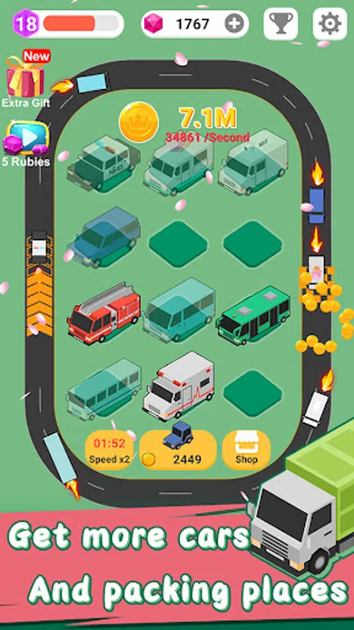 Expand Your Horizons: To accommodate your growing fleet, it's crucial to secure more highway space and packing places. This ensures that your cars have ample room to roam and generate wealth unhindered. Keep expanding and watch your profits soar!