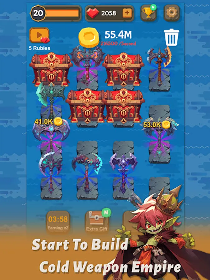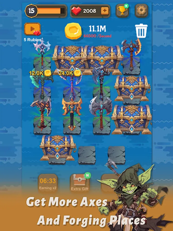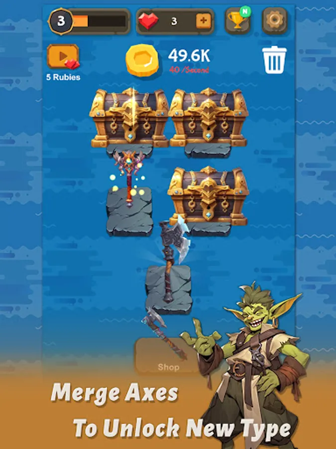 Every time you merge Axes, your blacksmith's shop gains valuable experience points, propelling it to new heights of success. The higher the level of your shop, the more prestigious it becomes.