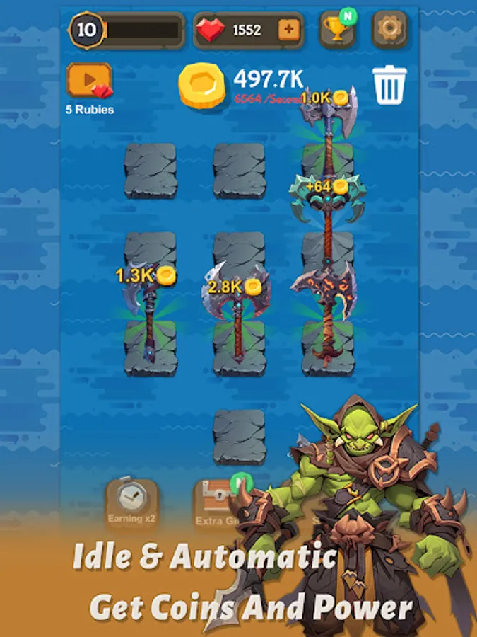 Unleash your creativity and witness the magic unfold as you combine Axes of unimaginable quality. Craft the legendary and awe-inspiring blades that heroes would wield with pride. Dive into the depths of strategy as you navigate the intricate world of resource management and trade with cunning Goblins. Will you outsmart them to amass a fortune, or will you strike a bargain that secures your dominance?