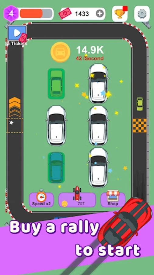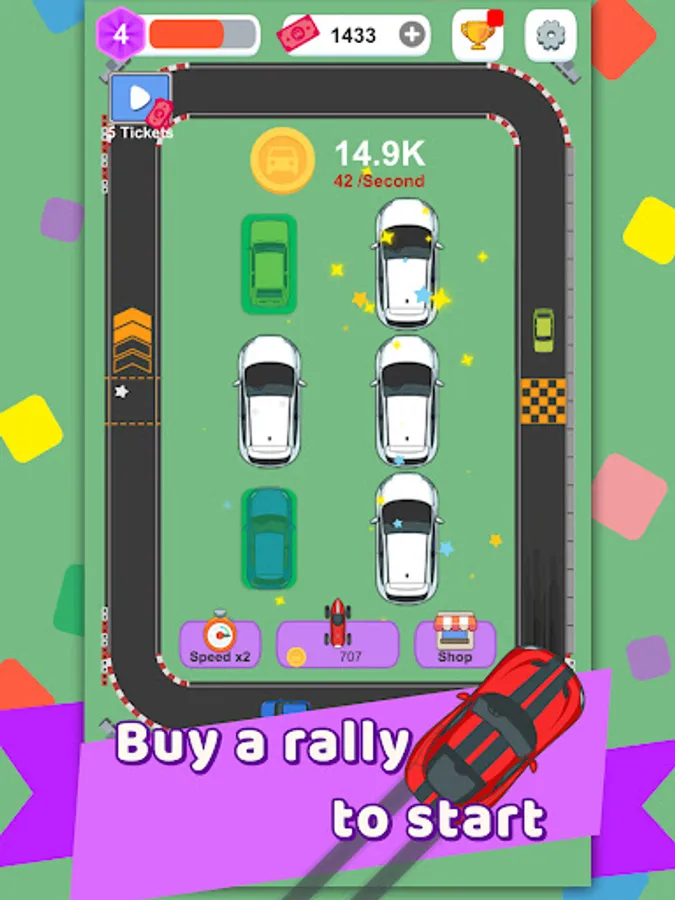 Let's dive into the gameplay. To kickstart your racing career, begin by purchasing some race cars. These powerful machines will be the foundation of your success. Next, send your fleet of race cars to the circuit, where they will put their skills to the test. But that's not all – with the unique merging mechanic, you can combine identical cars to create even faster and more formidable racers. Experience the thrill of witnessing your creations zoom past the competition and dominate the tracks.