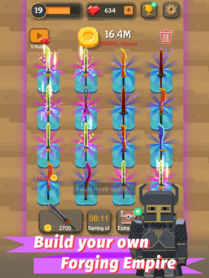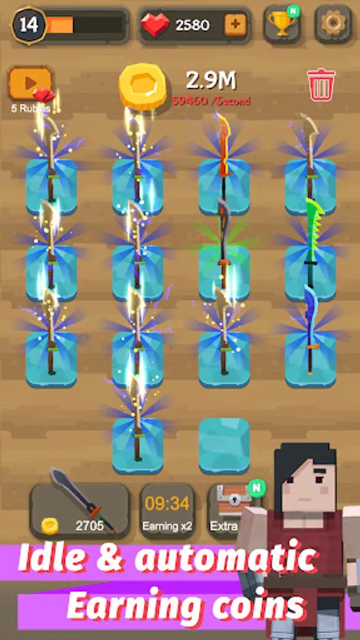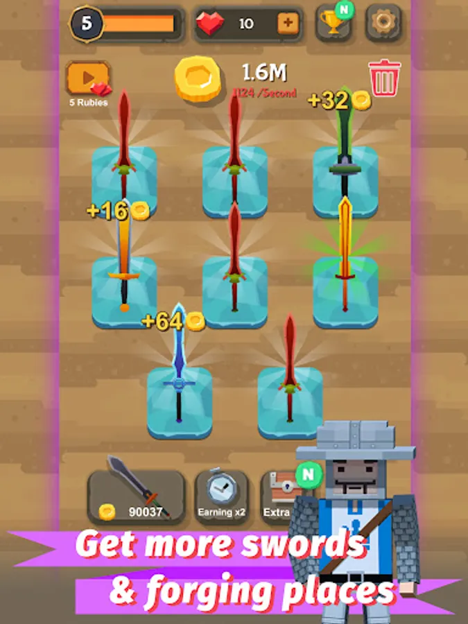 Embrace Higher-Level Swords: The higher the level of the sword, the more coins you'll generate. Invest your efforts in merging and forging these superior blades to maximize your profits.