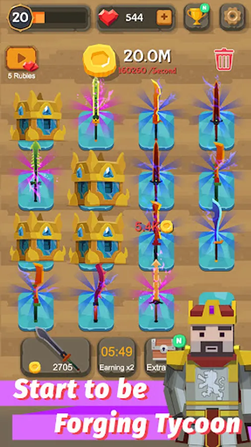 Forge for Experience: Every sword you merge contributes to the growth of your blacksmith's shop. Gain experience with each successful merge and watch your shop flourish.