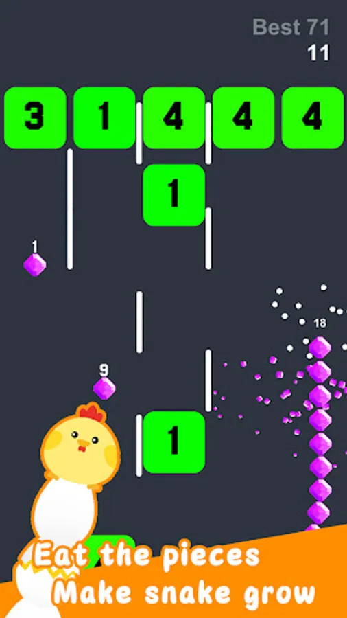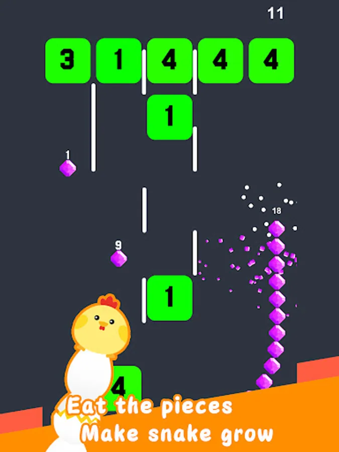 Are you ready to embark on an exciting adventure with Slide And Crush? This game takes the classic snake game and gives it a thrilling twist. Immerse yourself in a world where your main goal is to collect as much food as possible, allowing your snake to grow and dominate the game. But be careful! There are blocks obstructing your path, and you must strategically explode them to clear your way. Each block you hit will earn you a point, but be aware that it also costs you a part of your snake.