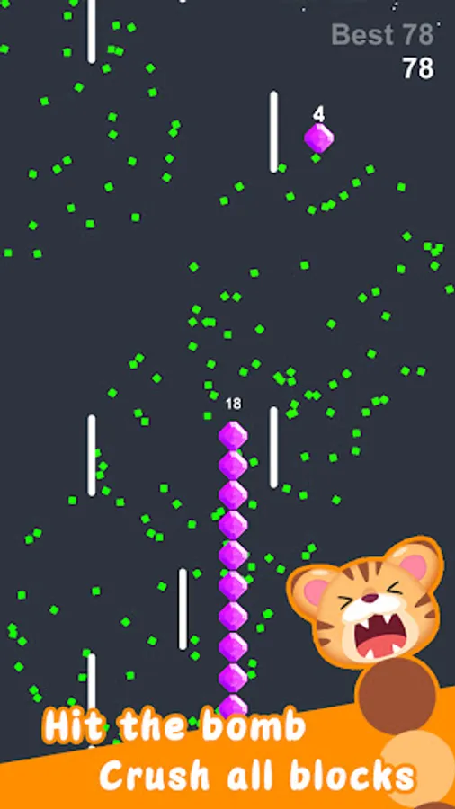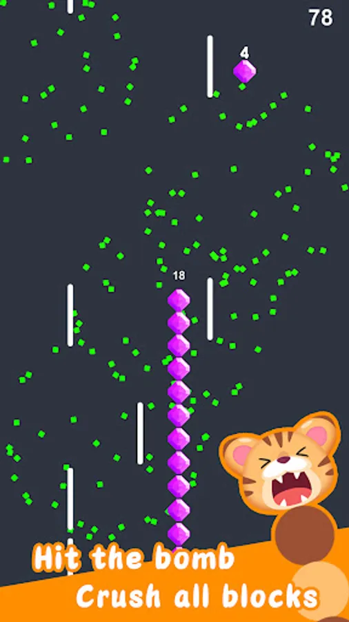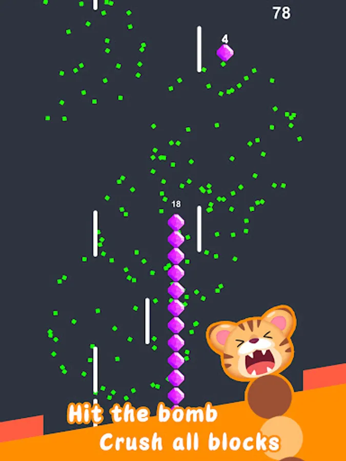 One of the best features of Slide And Crush is its simplicity. It's incredibly easy to learn and play, requiring just a single finger to control the game. With a simple touch and swipe to the left or right, you can smoothly maneuver your snake and devour the tempting balls scattered along the road, thereby increasing the length of your serpent. As you progress, don't forget to target and hit the blocks to break them and gain additional scores. But don't be deceived by its ease of play; achieving high scores in this game is a true challenge that will test your skills and determination.