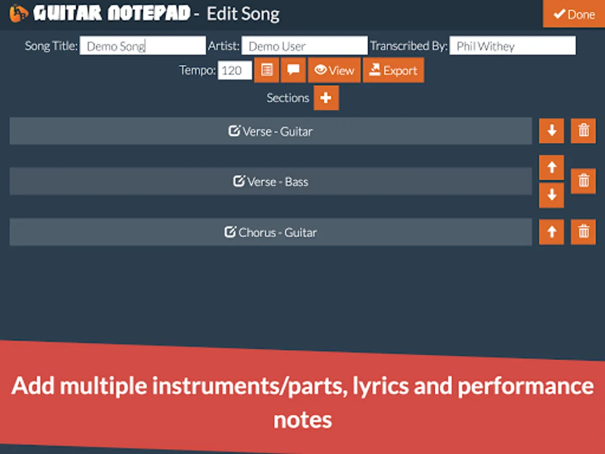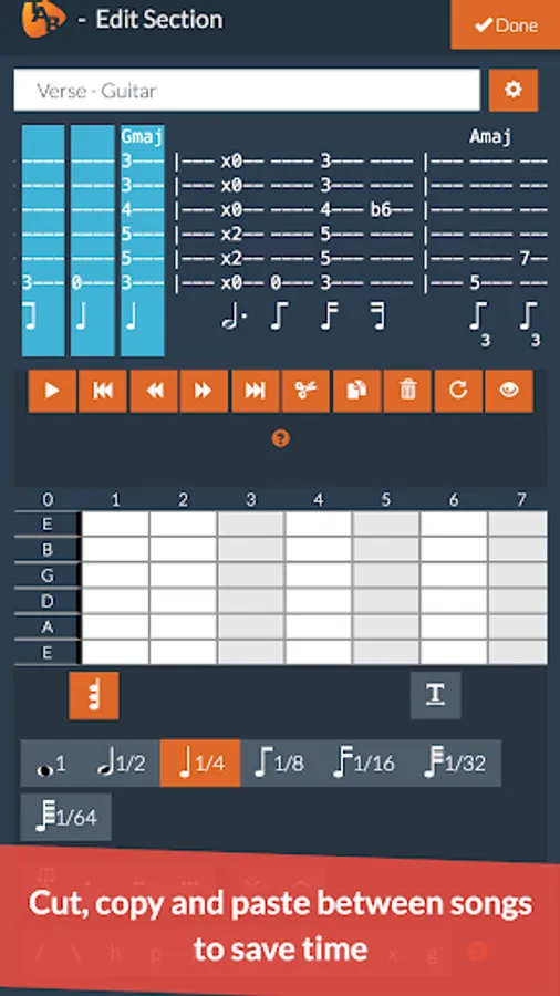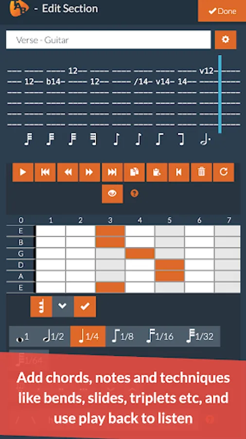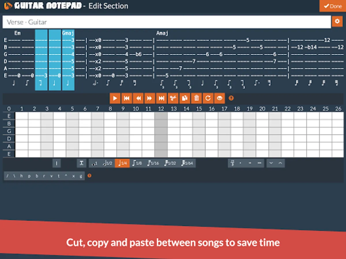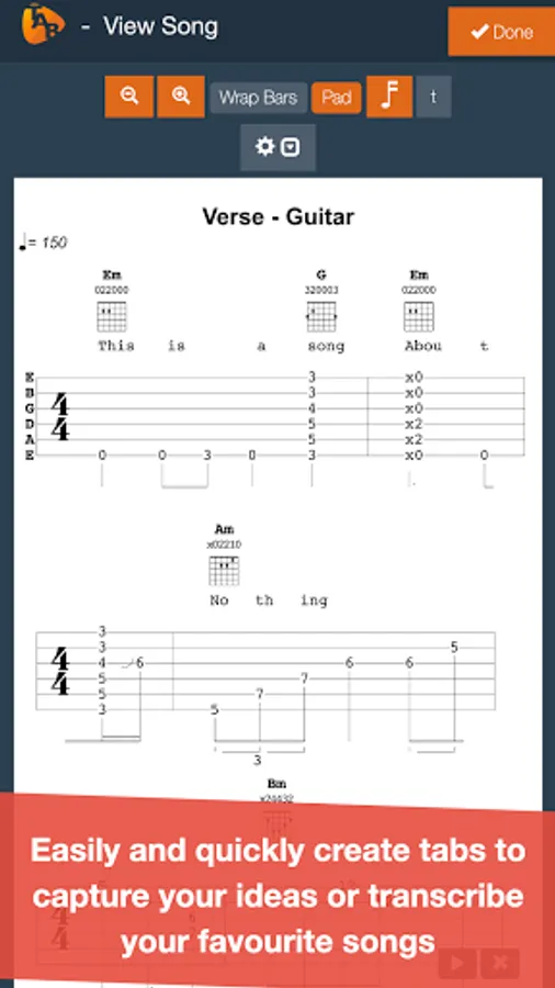 - Add chords, strum patterns and lyrics above your tabbed notes (no other apps I've seen support this!)