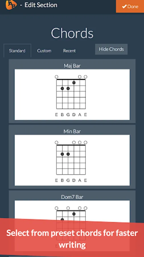 - Continuous chord mode - saves having to perform an extra tap to start adding chords