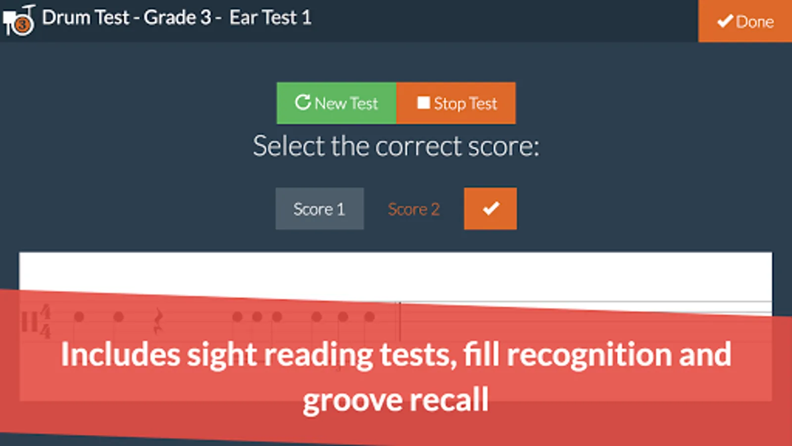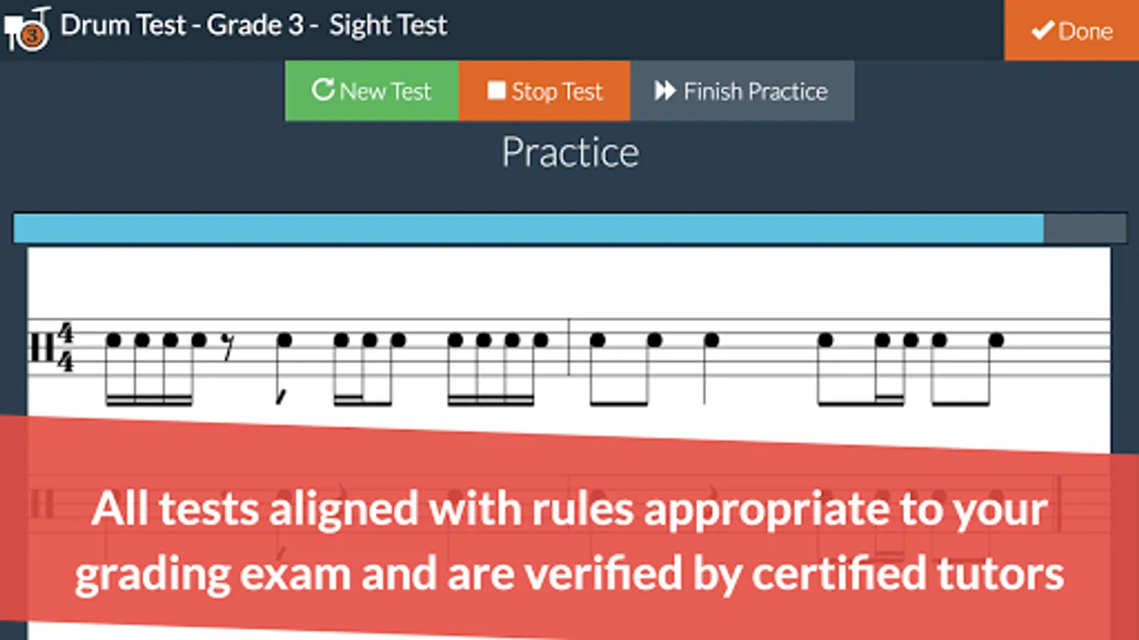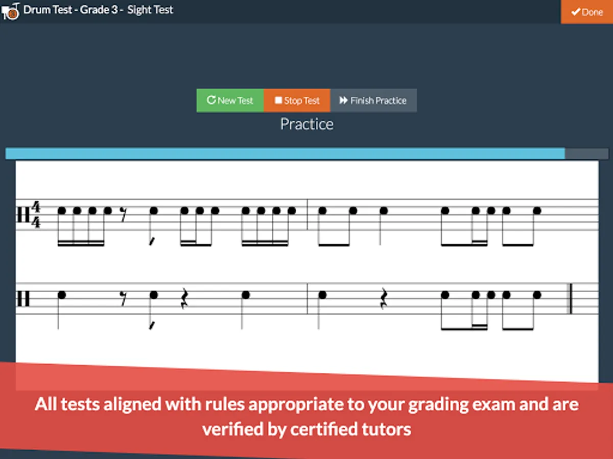 The ear and sight reading tests are a daunting aspect of your exam. Unlike the performance pieces and technical exercises you don't know what to expect so they can be difficult to practice for, especially without a tutor. Using the expert knowledge of our certified North London Drums tutors, the app will produce an infinite number of sight reading and ear tests examples, all within the rules and difficulty appropriate for your grade.