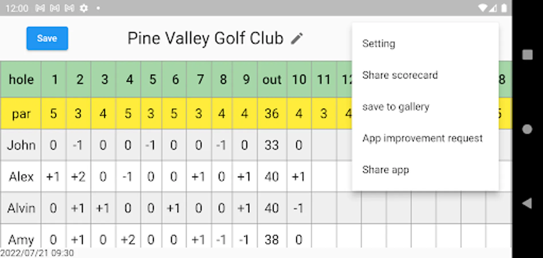 Record your score with the Golf Scorecard App