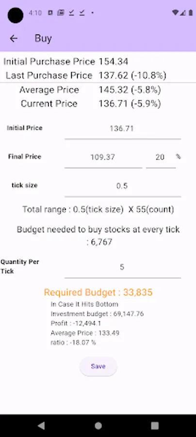 - When buying stocks, it calculates the number of shares to buy incrementally per tick to hedge against a drop in that stock's value, and informs you of the required budget.
