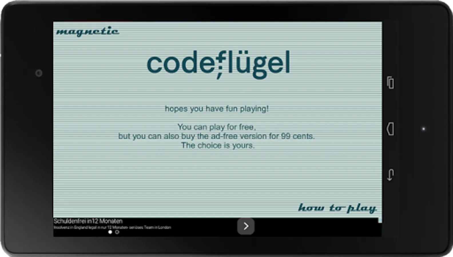 magnetic is a physics-based adventure game demanding a lot of patience and skill. Activate the magnet's gravitational pull by tapping the display and use it to escape the labyrinth.