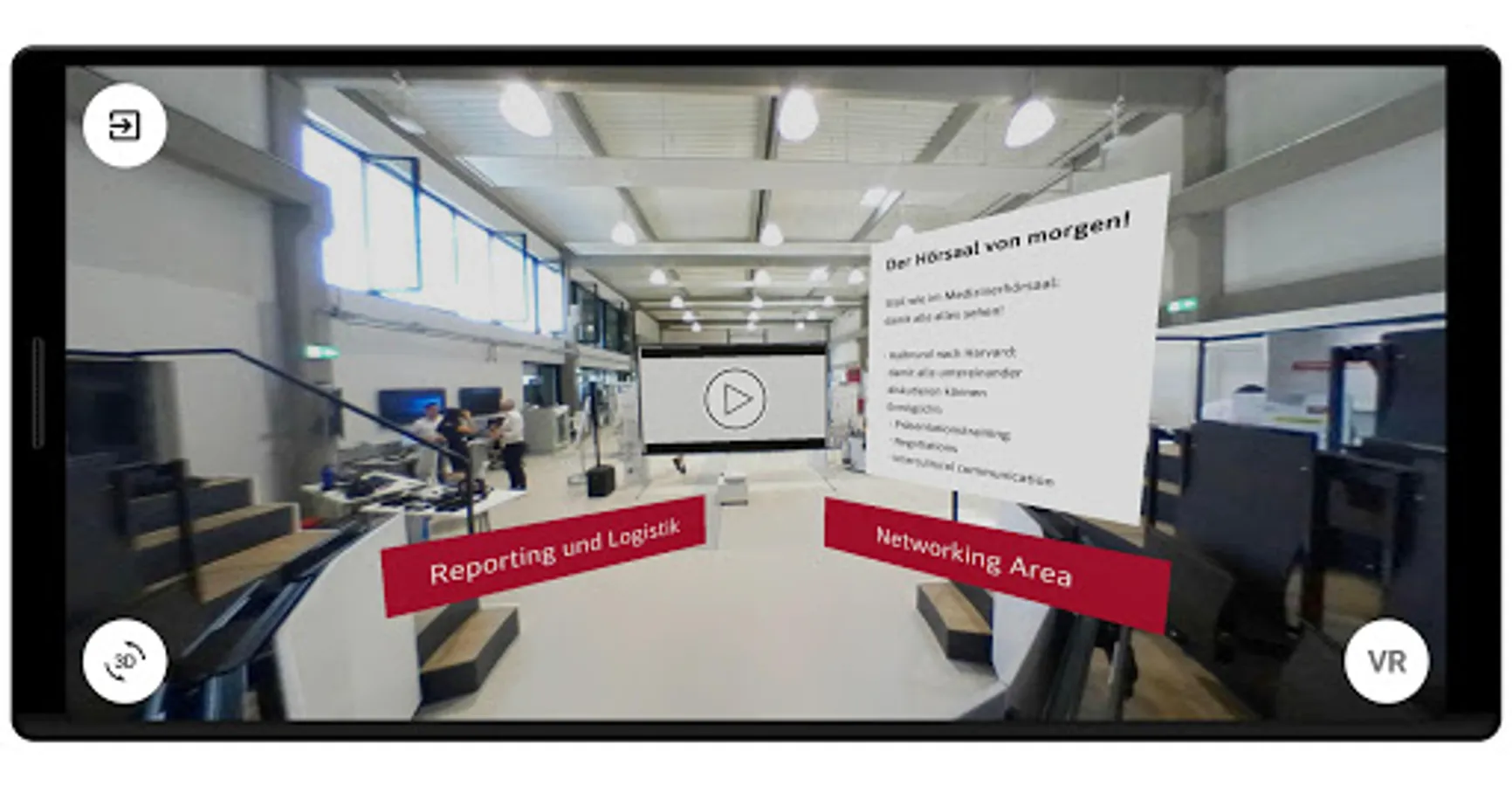 With the VR view, the Smart Production Lab can be explored, either in a guided tour or freely according to the OpenWorld idea of everyone, according to your mood - but don't forget to drop by the cinema.