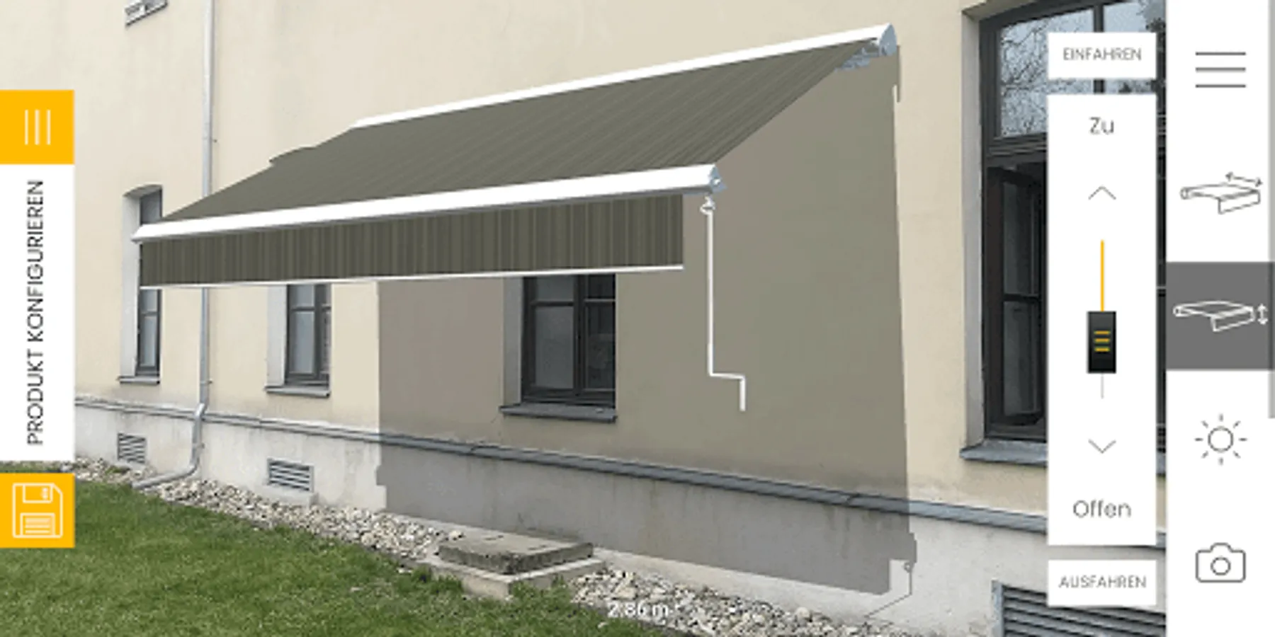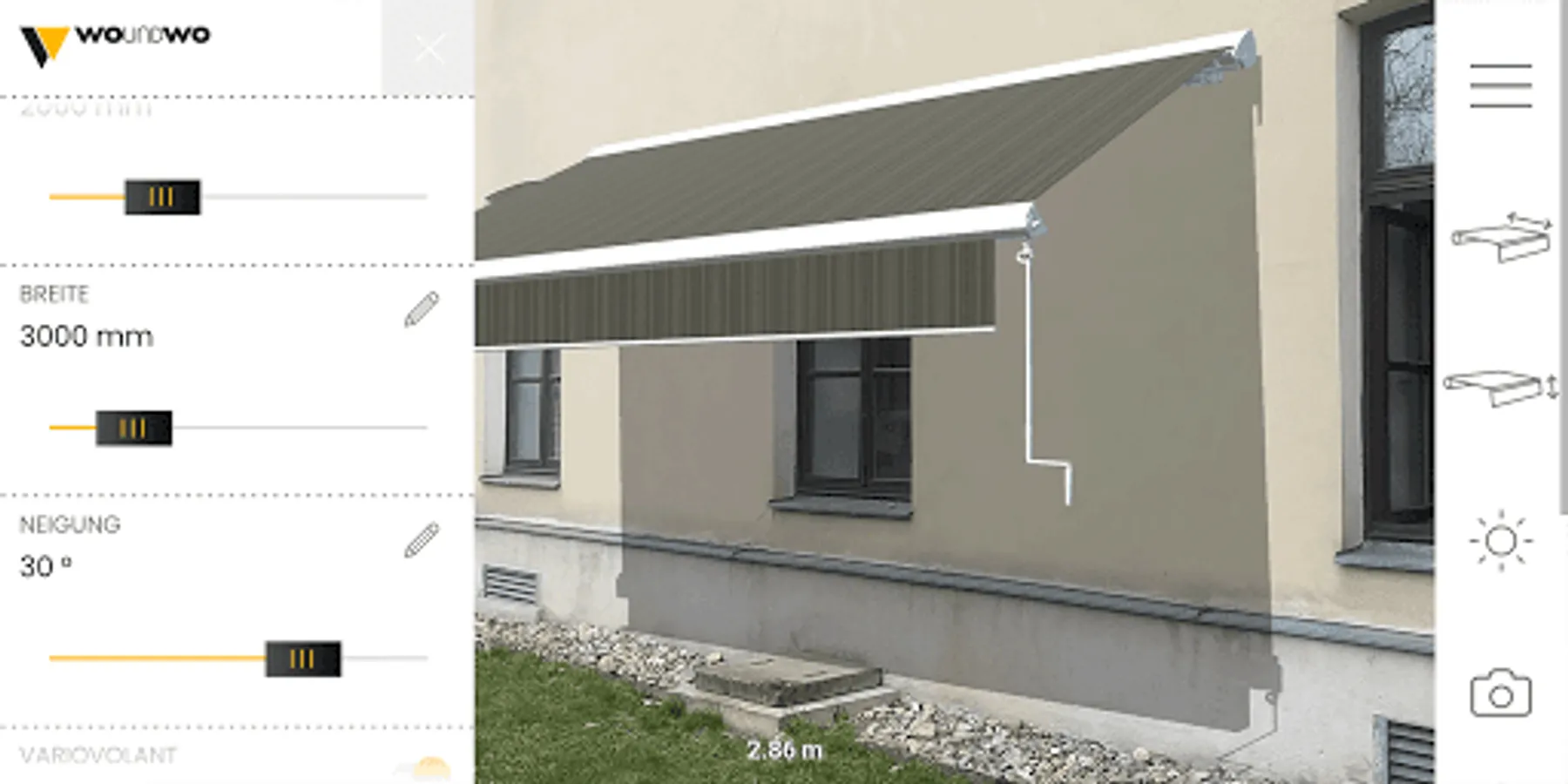 With the WO&WO Sunlight Designer, many of our Where & Where sun protection products can be convincingly visualized in your living situation as a smart app application. With the help of the live camera, a tailor-made Wo & Where awning 3D model is simulated on your own terrace or balcony. Based on the product group, fabric, frame color and product dimensions, the Where & Where sun protection can be configured exactly for your requirements. A simple change of the awning fabric or frame colors allows a quick overview of the variety of colors - suitable for your living situation. A separate shadow simulator enables the shadow course to be visualized in conjunction with the position of the sun on the basis of geolocation, date and time.