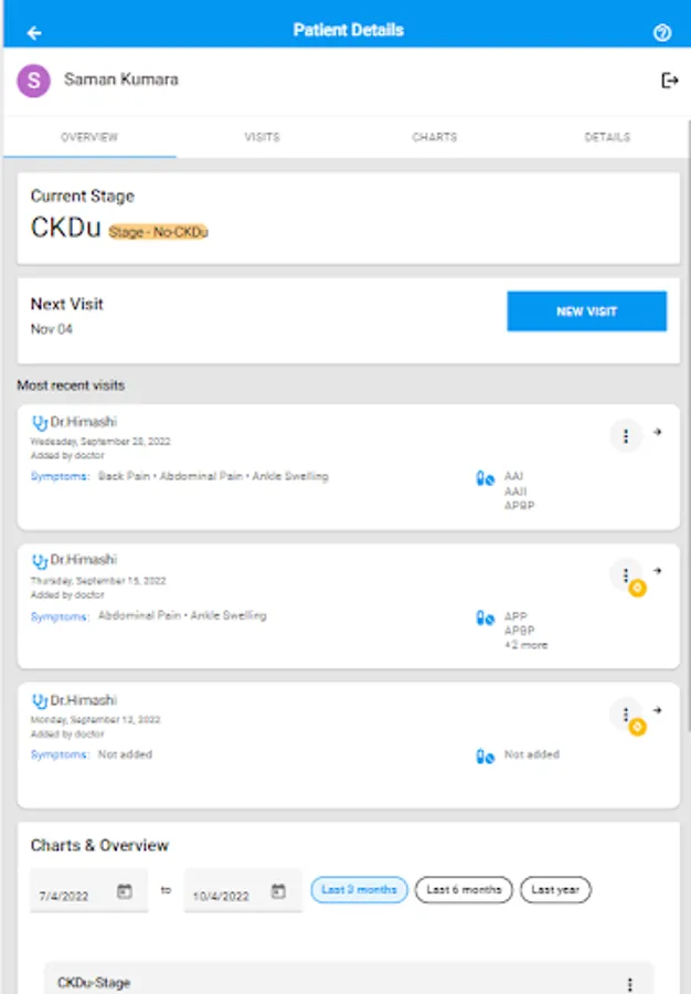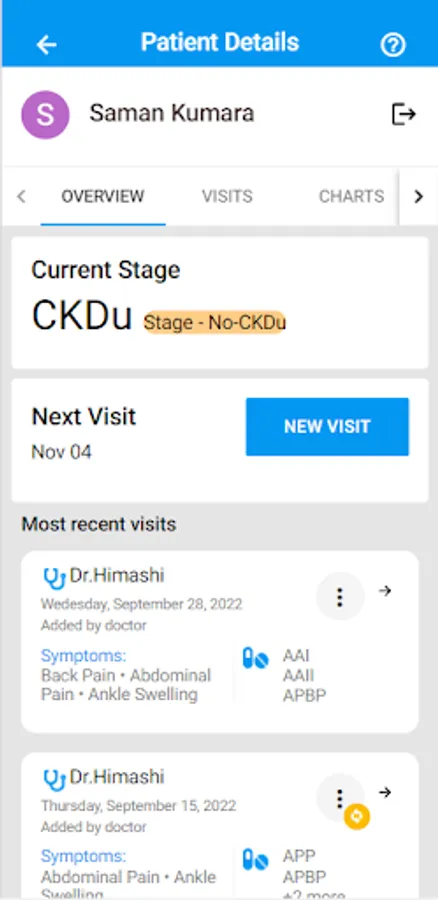 MediCare Plus is a mobile application to record patient's visit data. In that doctors can track their patients’ medical behaviors based on the previous visits details. This is basically developed for tracking kidney patients details. Recently, Sri Lanka encountered increased number of patients with Chronic Kidney Disease of Unknown etiology. The amount of data on treatments against this disease is very less compared to the other common diseases. Hence it is very difficult to develop a relationship between the drugs and the patients condition in this medical area. Hence this mobile assistant is developed to easily collect the required data with the consent of the patient hence later those will be used with AI to build and forecast the relationship between drug dosage and severity and make easy those parameters for doctors systematically.
