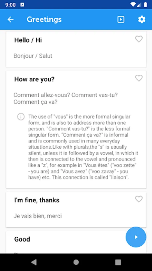 Learn French is recorded using native speaker and we have tried our best to be authentic in the pronunciation whilst ensuring it is easy to understand. Recommended app for tourists and business people visiting France.