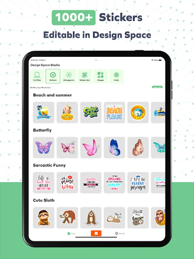 Design Space Studio gives you complete creative freedom over your next DIY project. Start from scratch or browse our Image Library for thousands of SVG Cut files, Monograms, Fonts, and Monogram Fonts. Use the Joy app to create fun or functional DIY Projects for your crafting needs. Design Space Studio also offers 1000+ watercolor stickers along with 200+ watercolor overlays.