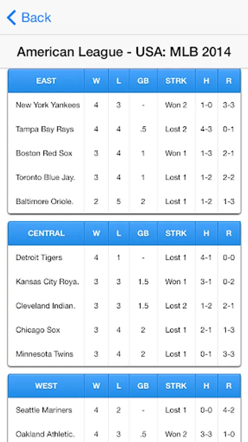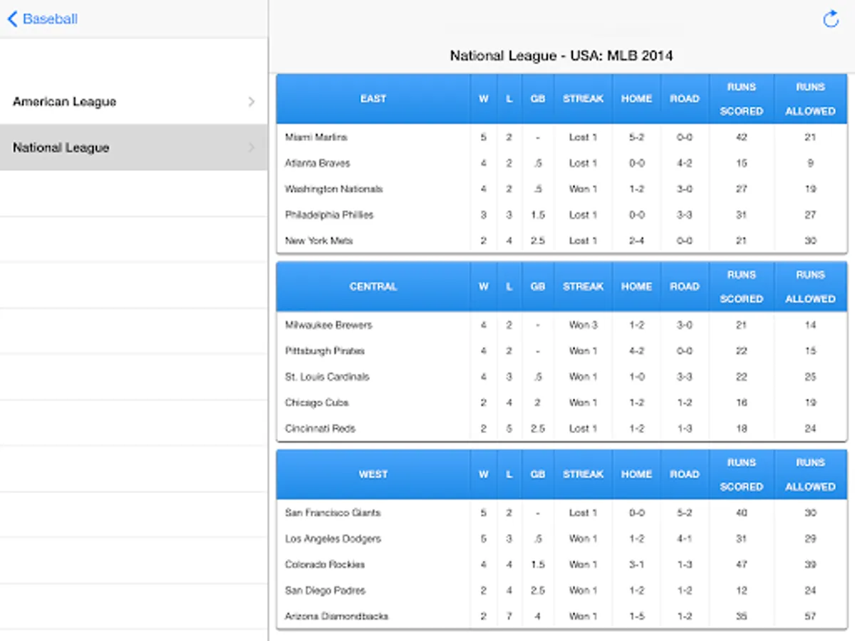The app will report back for all games played by the 30 teams competing in the three divisions of both the National League and the American League.
