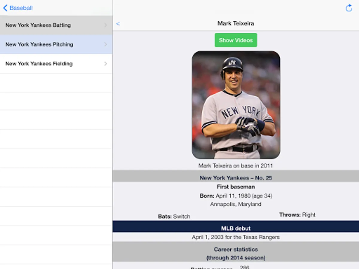 For each game the Baseball app will show the lineups of both playing teams and it will display information on each individual baseball player including biographical stats, club history and player stats. During the game the app will report live and update on scored points, runs and outs.