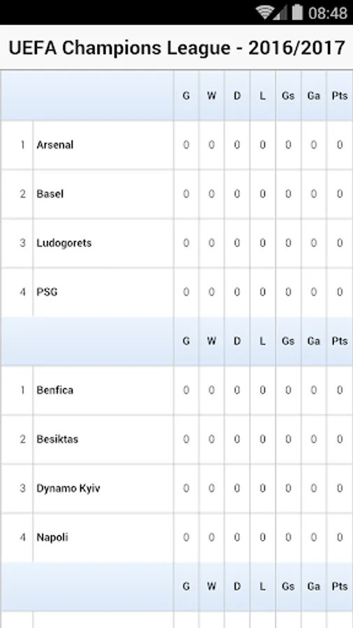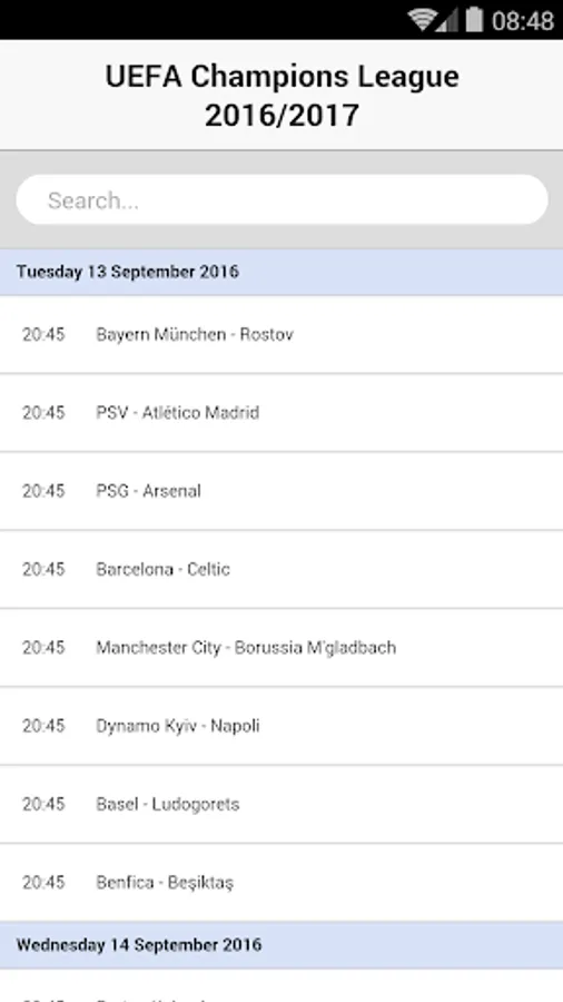 Live football scores for the Champions League, real-time data for live football / soccer scores for Champions League.