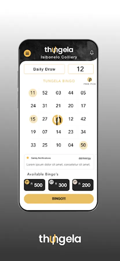 Introducing the ultimate Bingo experience tailored exclusively for Isibonelo Colliery part of Thungela Limited - the Bingo app that brings fun and excitement right to your fingertips! The game is built of our mantra of “Safety Always”. At Isibonelo we believe that safety and fun can co-exist. The app was designed to energise the workforce to work safely. Numbers are drawn daily and each round lasts 90 days, there are prizes for 1st, 2nd, 3rd and jackpot. As such, the game can be reset if there is a workplace incident. There is admin portal where the game is reset and safety messages are created as well as admin users management.