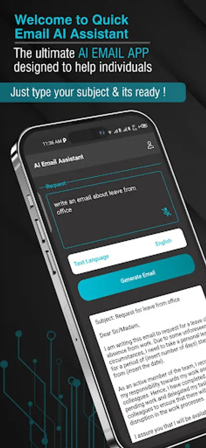 Open the app, simply signup and create an account.You can Type, paste or speech to text with the support of languages like English, German, French and Arabic and You'll get a perfectly finished email that is ready to share within a few seconds.