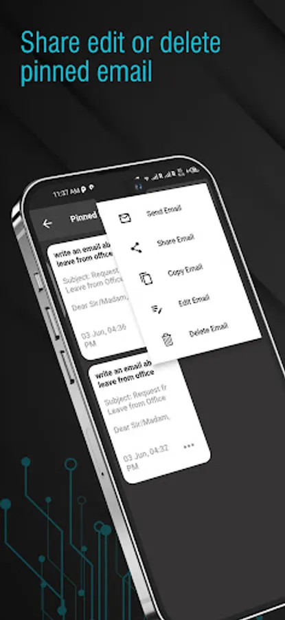 Users can easily create, pin (save for later and can edit or delete), copy, send, and manage emails from a single platform.
