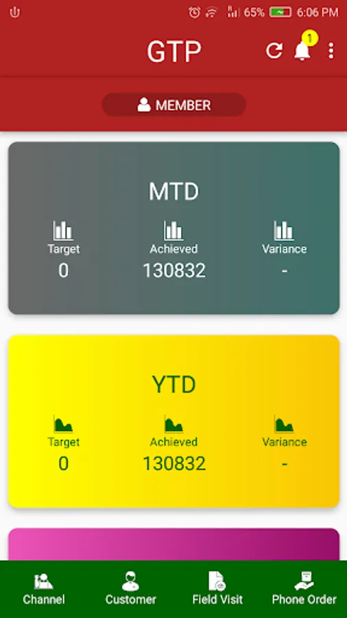 - Dashboard showing count of yearly, monthly and date vice target variances