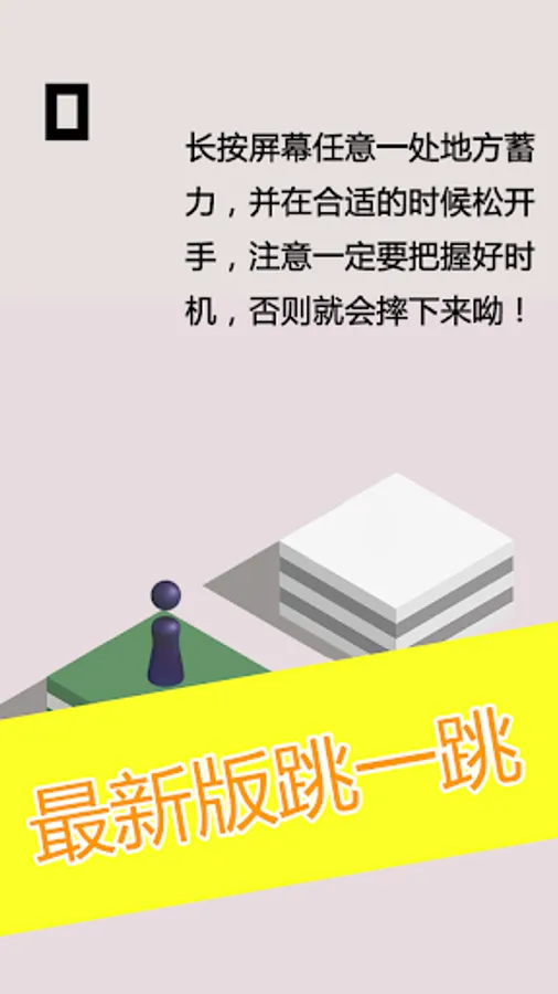 Jump Jump was Very simple to play and very fun. Players press and hold on screen, the little hero will jump to the next cube when the finger is released. The longer the press is the further the hero can jump. you just be careful do not let the hero fall off the cube, or the game is over. Try it out and have fun!