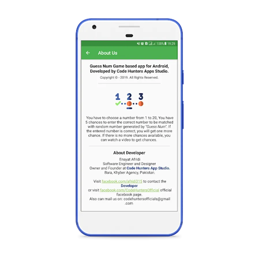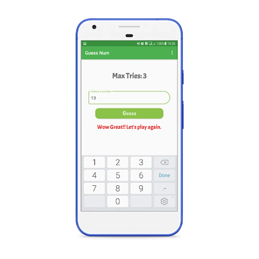 You have to enter a number from 1 to 20, you will have 5 chances to enter the correct number to be matched with number generated by "GuessNum".