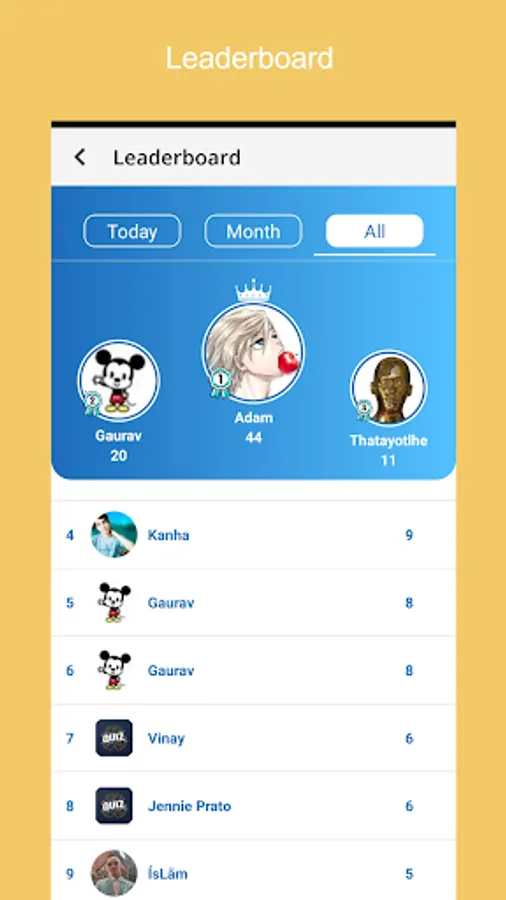 - Custom Leaderboard: Users can see the Custom Leaderboard filter by Daily, Monthly, and All (Yearly)