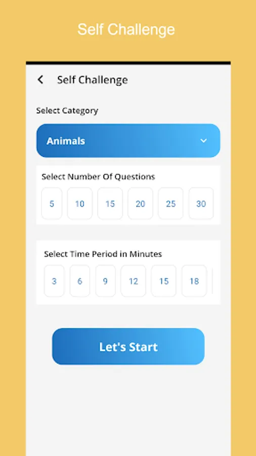 - Self Challenge: You will get a chance to challenge yourself by setting your own categories, number of questions, and time slot.
