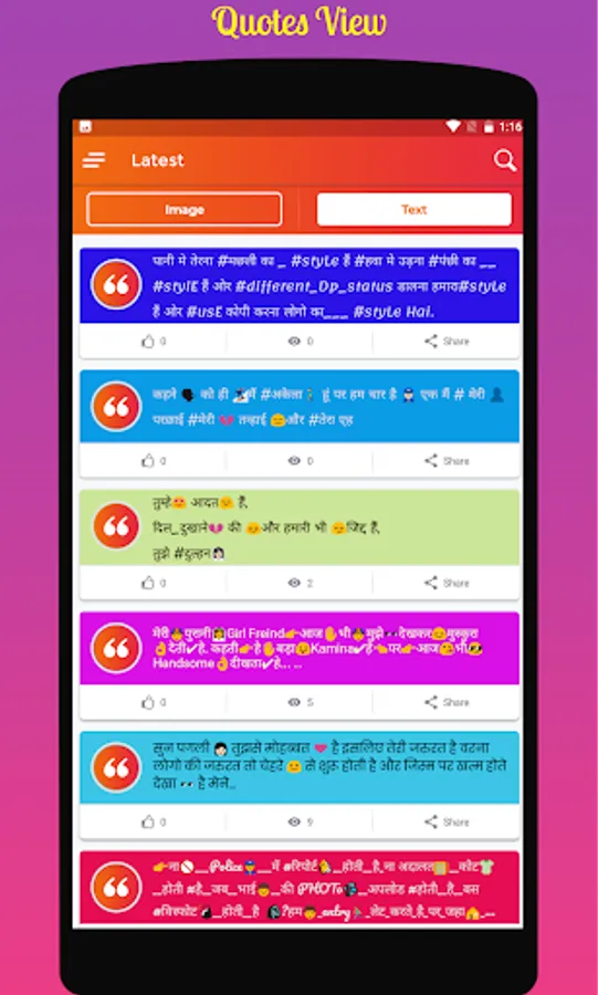 "UApp Hindi Quotes DP Status" is completely Free and Best Application for All People Who love to set Best Image Status, Video Status and Quotes on Facebook, WhatsApp & other Social media.