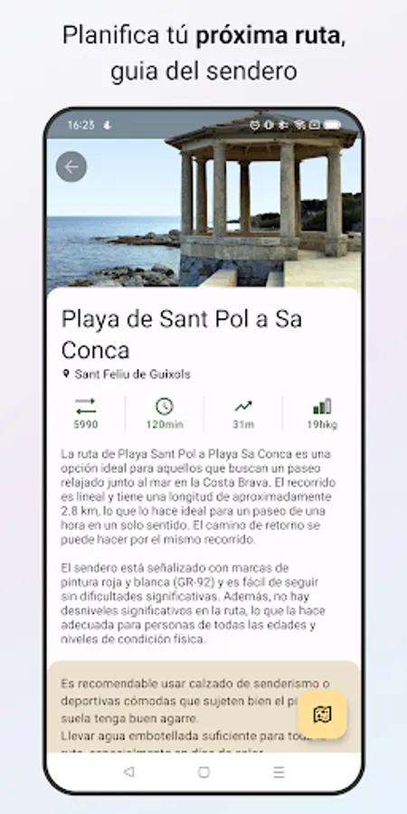 • Information on points of interest: The application provides detailed information on the points of interest on the routes, including descriptions, images and location on the map. In this way, you will be able to discover the secrets of the Costa Brava while enjoying nature.
