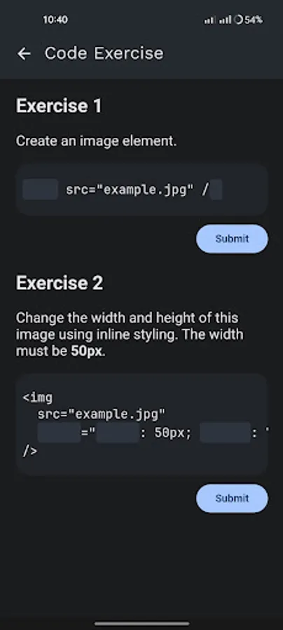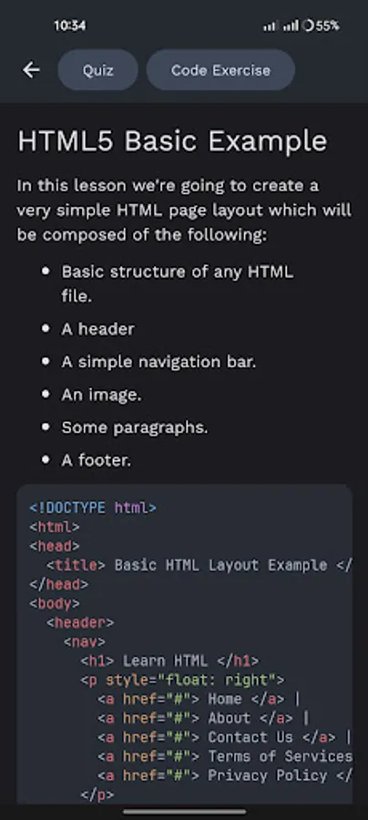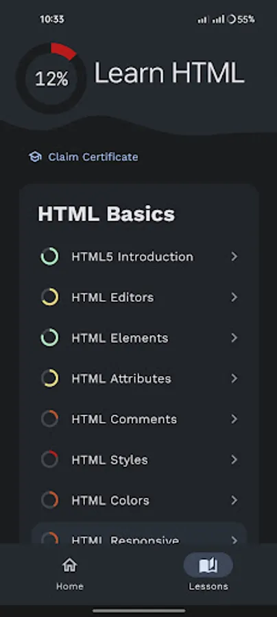 In every lesson, there are explanations, examples with the Try It Yourself functionality that help you effectively learn to code HTML.