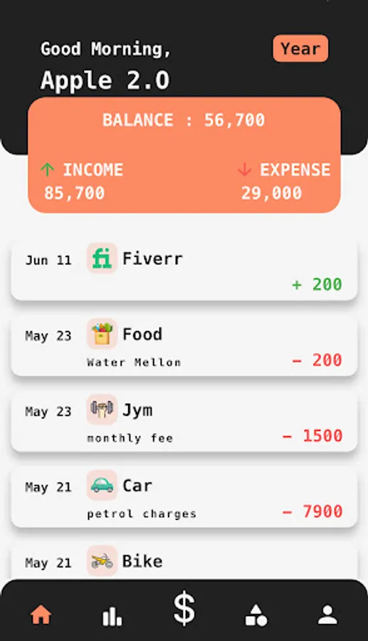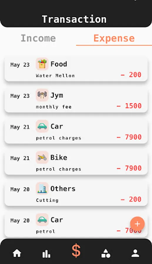 4. You can Delete your transactions or categories by just swiping them right to left.