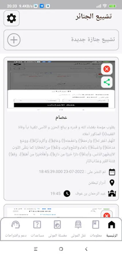 This application was created with the purpose of facilitating and speeding up the process of funerals and urging people to seek wages. This is only specific to the country of Algeria (all states and municipalities exist)