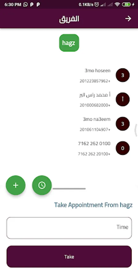 An appointment program for booking appointments, displaying available appointments for people, the possibility of making groups, and nominating appointments available to all members of the group