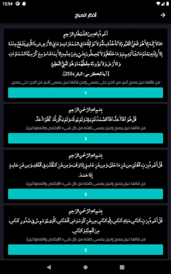 A remembrance application enables you to read the daily remembrances such as the morning and evening remembrances and other daily supplications.