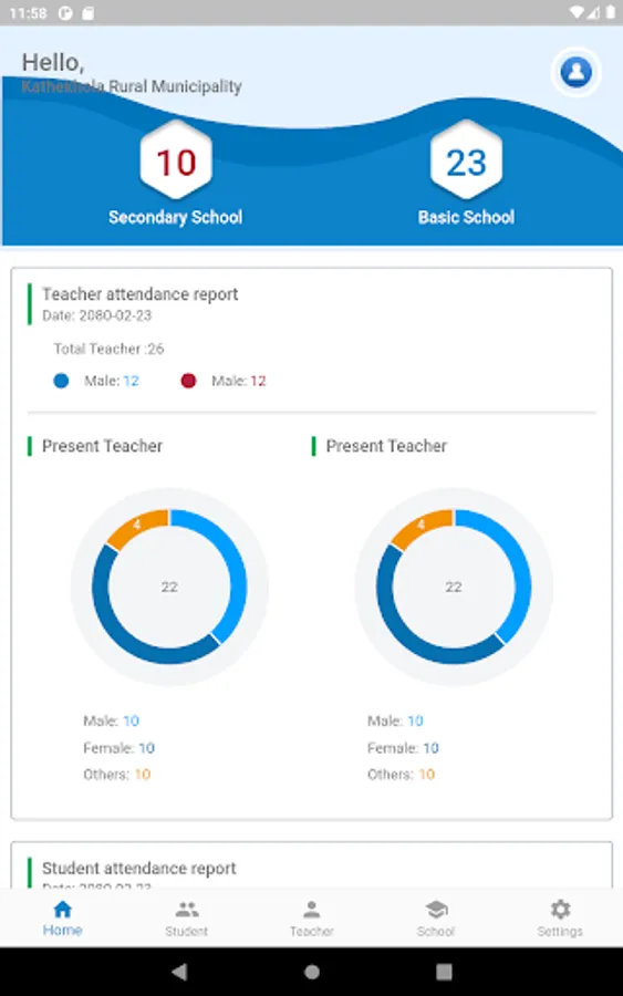 Smart School Palika is an application where different registered Palika can monitor the schools under them. Palika can observe teachers' and students' attendance and plan accordingly.