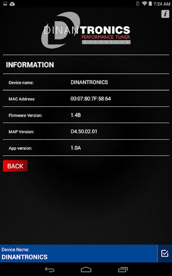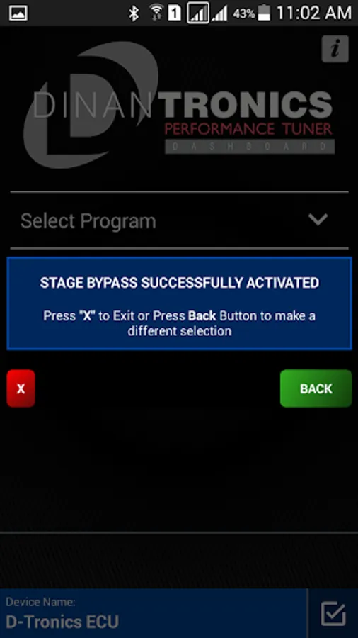 Now the power of your DINANTronics Performance Tuner can be unlocked via your phone or mobile device equipped with Bluetooth. Whether you want to simply put the device in bypass for testing purposes, dyno testing, or before/after runs, or to switch between stages/maps, the DINANTronics Dashboard can accommodate it. With an easy to use interface your Dinan-tuned BMW vehicle can switch between tame and aggressive with the swipe of a finger.