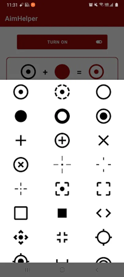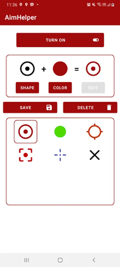 You can select the desired Aim shape and adjust its position, rotation, size, and transparency.