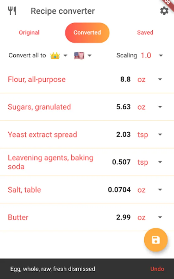 ✔️ Easily convert an imperial (UK, US, CA, NZ) units recipe into metric units and vice versa.