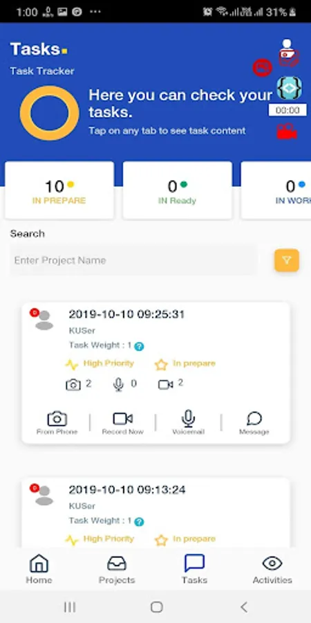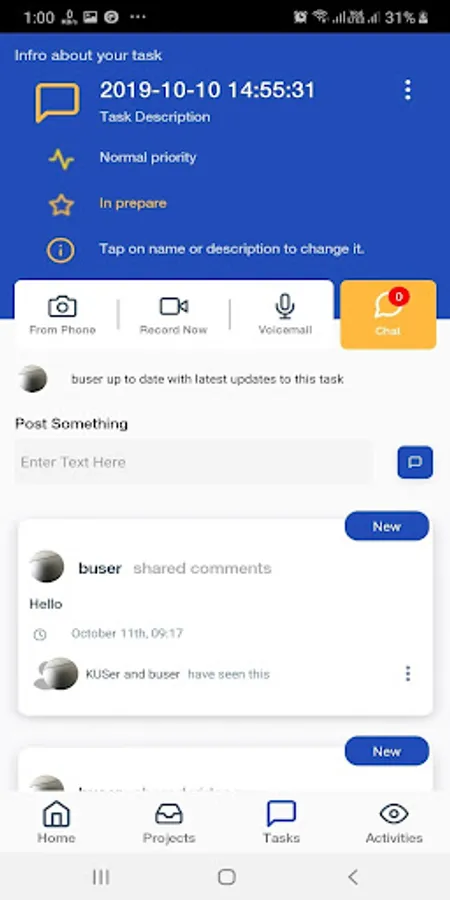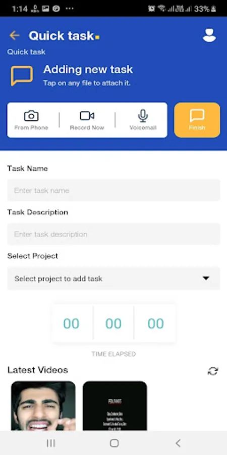 Task Name, Attachments with Screenshot, Screen Recording, Audio Recording, Set Task Priority, Image Selection.