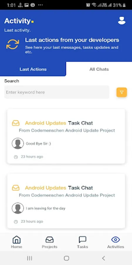 - Assign Developer and chat with developer and get real time notifications for task status updates.