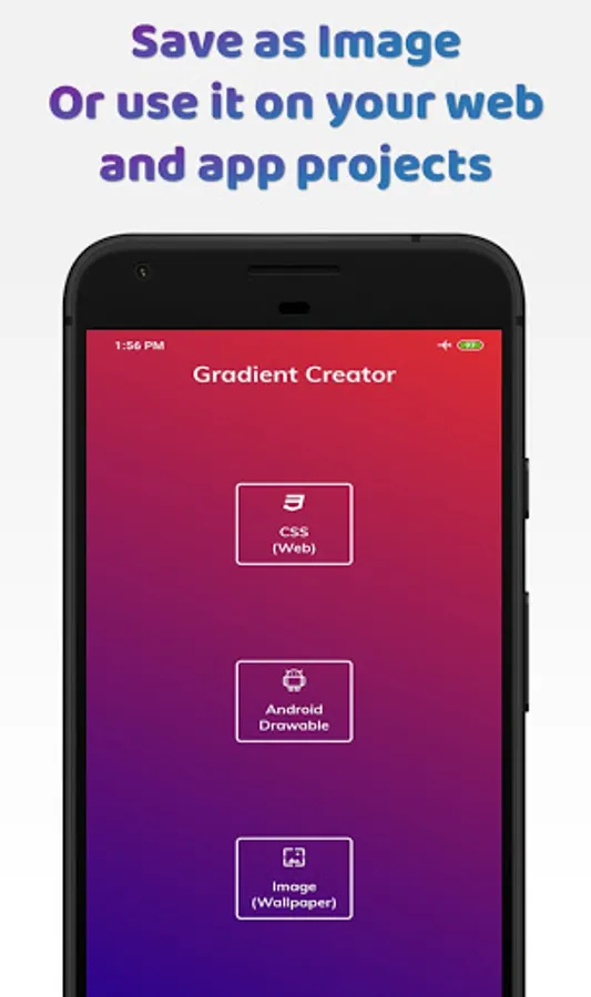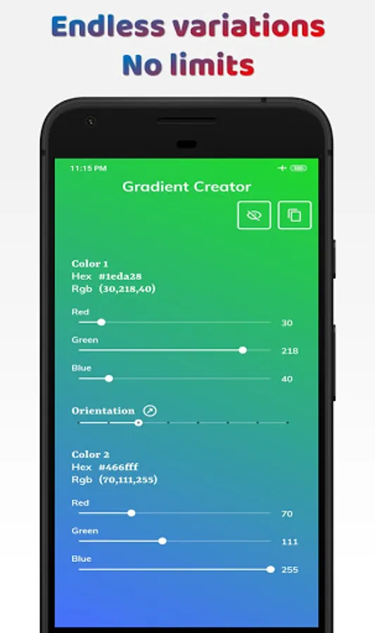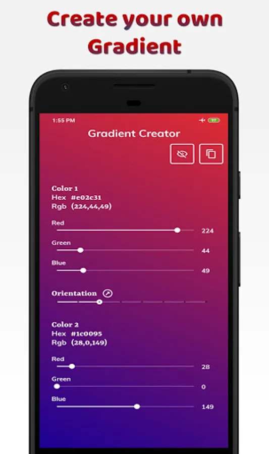 Let's create mesmerizing gradients by using this simple app with easy UI and absolutely NO ADS .