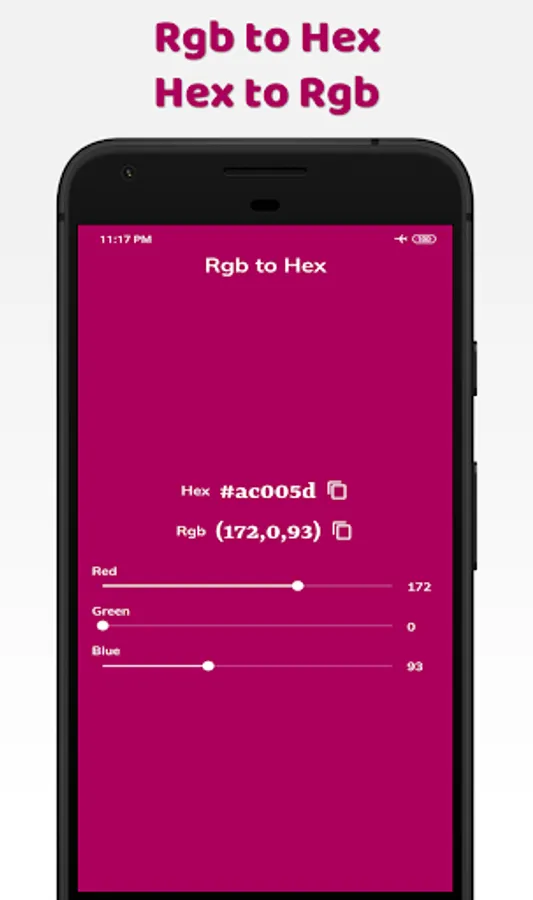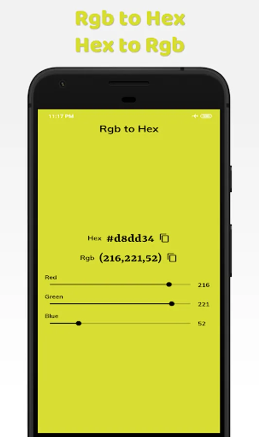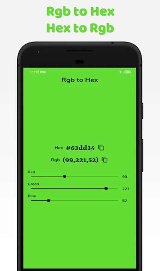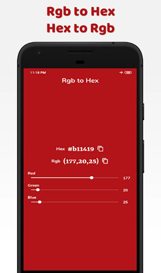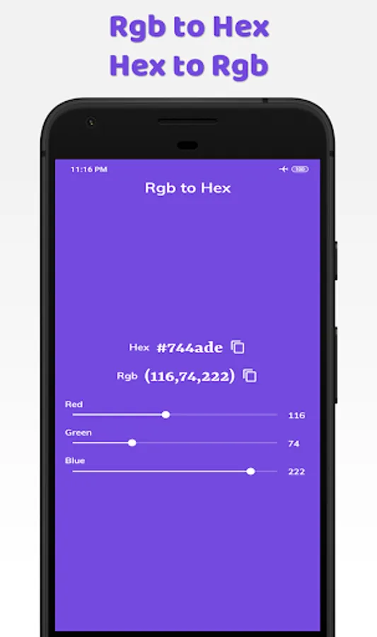 A simple UI app to get color's HEX values from it's RGB values or vice versa. Very useful for all such as UI Designer, Web Designer, App Designer.