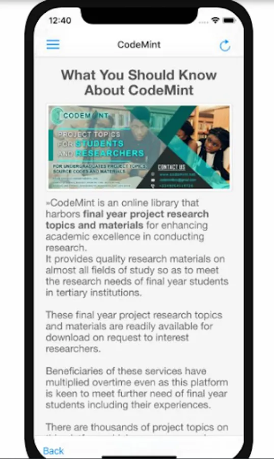 CodeMint is an online library that harbors final year project research topics and materials for enhancing academic excellence in conducting research.