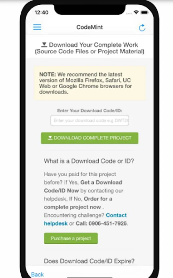 To get access to the full source code you will need to request for it by either clicking the source code category such as PHP, C++, C#, Python, Java, Matlab and several others on CodeMint. Click the title of any source code project you are interested in and then use the “Get Full Access” or “Get Complete Source Code” button to request for the full source code project. If you face any challenge, feel free to contact helpdesk via phone call, WhatsApp or email.