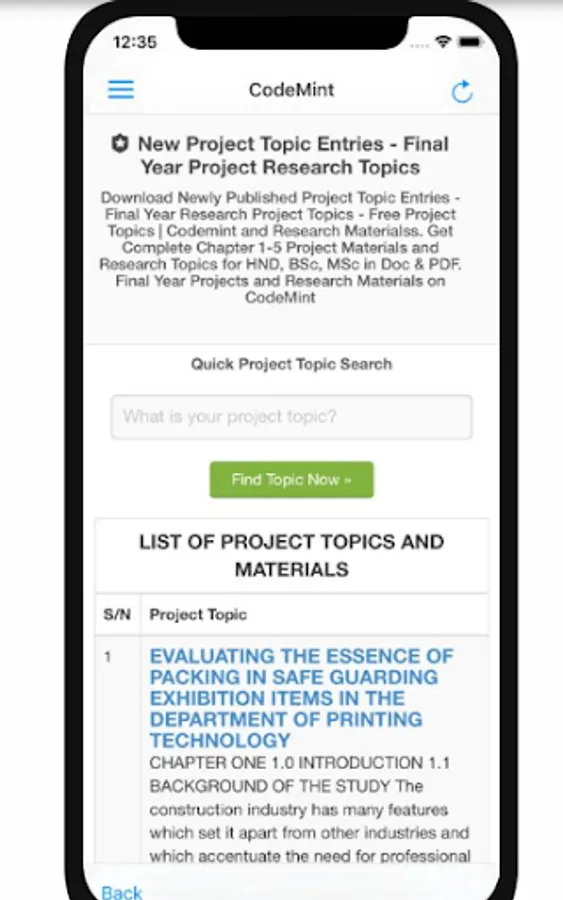Finding research topics and materials published on CodeMint is quite easy. There are over 21,000 published project research topics as at January 2020.