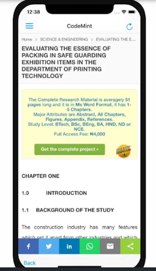 6. Click on “Get Full Access” or “Get Complete Material” button to request for the full research work hosted on our online repository.