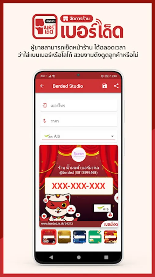 This app is for owners who sell mobile phone numbers on the website. https://berded.in.th to be able to